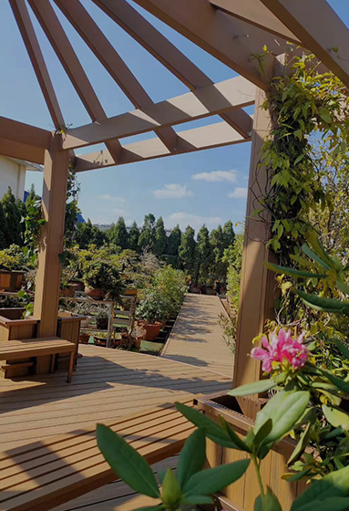 江蘇??菩虏牧嫌邢薰咀溆诮K省灌南縣經開區,地理優越,交通便利,離長深高速出口及高鐵站僅5分鐘路程。本公司是一家專注戶外木塑型材研發,生產,營銷為一體的朝陽企業。公司目前主要產品有各種規格的戶外木塑地板,護欄,花架,花箱,涼亭。產品既有天然木質紋理感,又色彩多姿多樣贏得客戶的信賴的同時也為企業贏得市場。